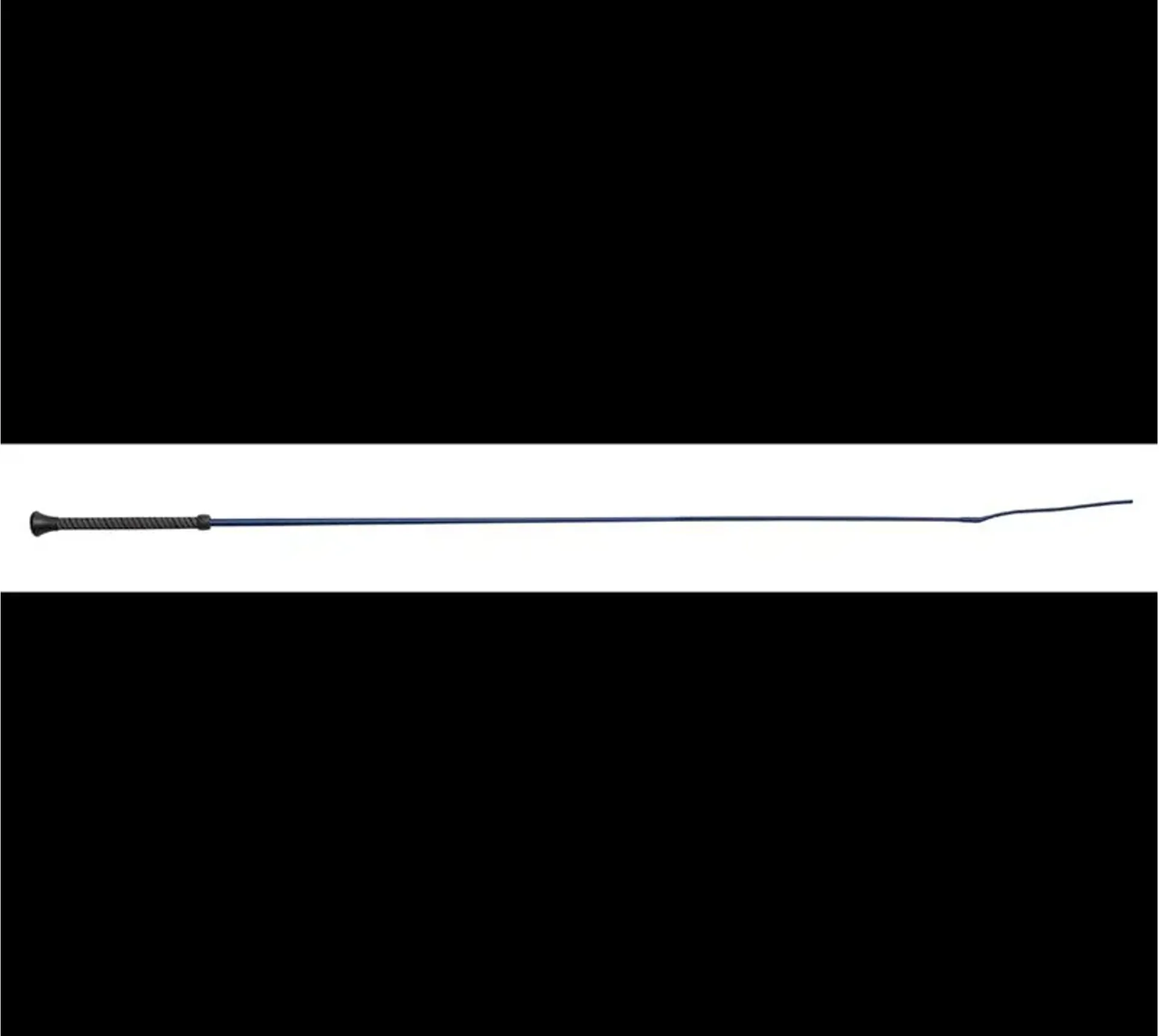 Dressage whip with a single coloured thread stem.Rubber grip handle and a plastic button at the end to help prevent it being dropped. Length: 39" (97.5cm).