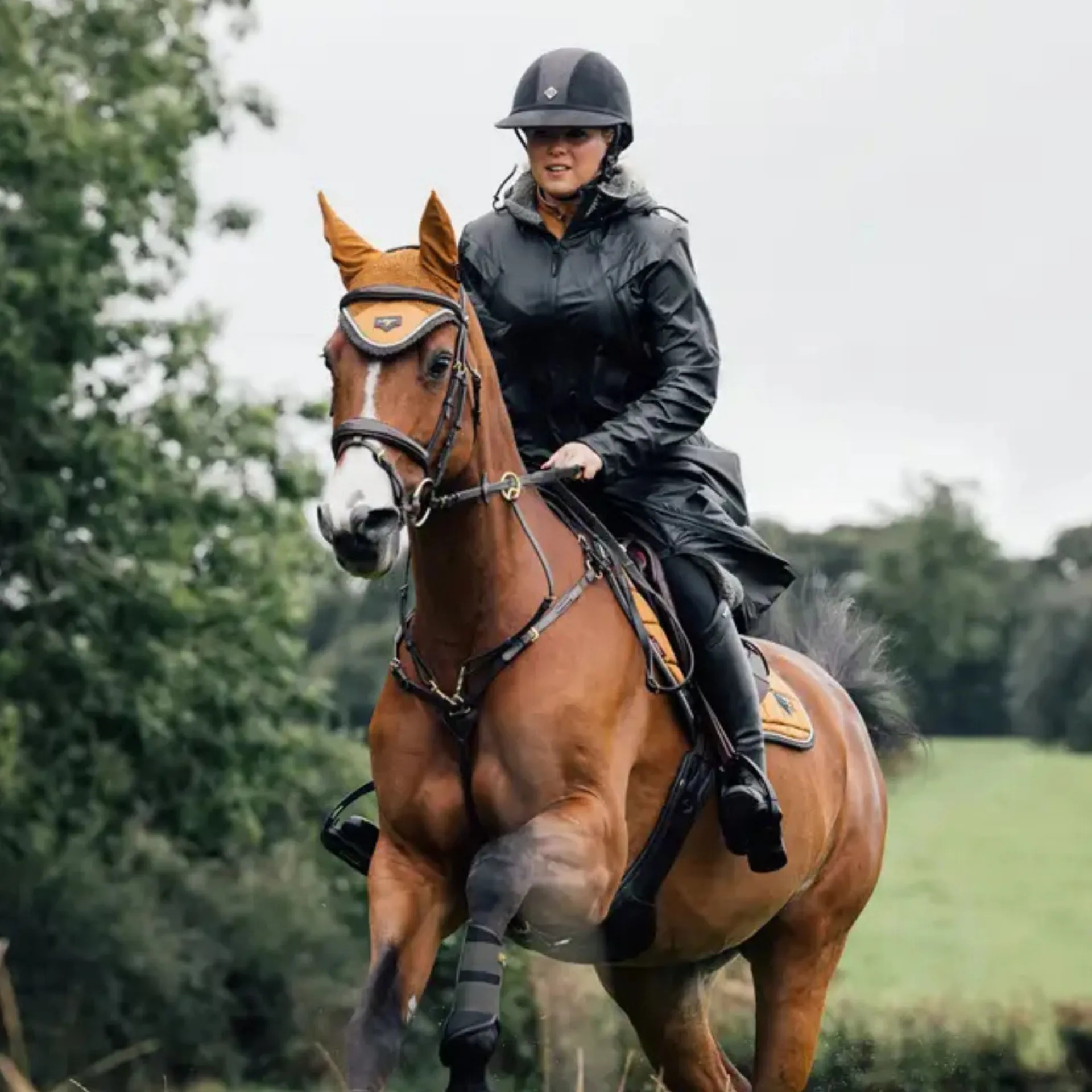 A two-way front zip gives you flexibility, while the back hem vent allows for fitting over the saddle. The rubberised outer fabric means stains simply slide or easily wipe off - an ideal feature for life with horses.