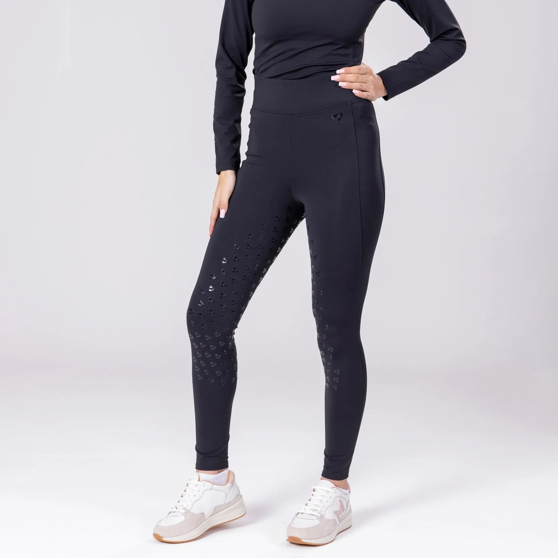 These tights offer a wicking next-to-skin layer with all-round stretch. Full silicone grips keep the rider secure in the saddle and protect against rubs. The lower leg is shaped to flatter and to avoid ride up. A deep, high-rise waistband offers full coverage and a side drop-in pocket holds a mobile phone securely. The Eltar brings essential performance to your riding along with coordinated looks for you and your horse.