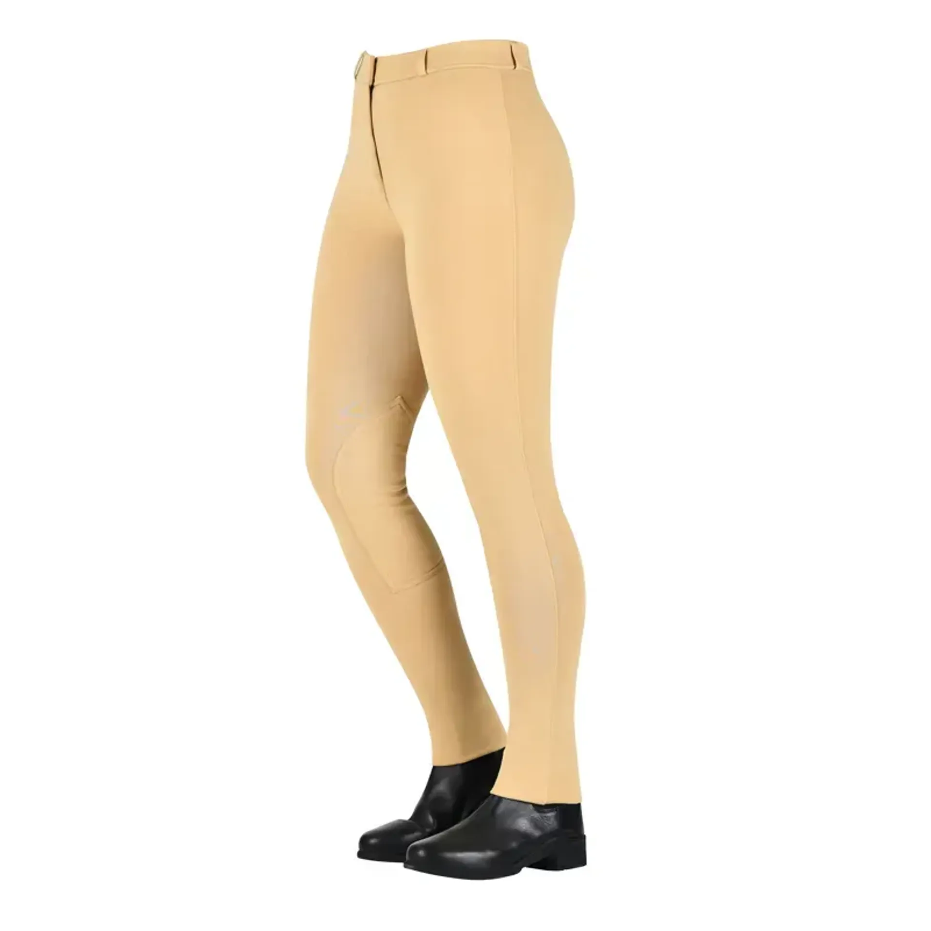 Designed with comfort and affordability in mind, featuring a self fabric knee patch for extra protection and comfort when in the saddle, a zip fly front closure with hook and eye top for a secure fit. The stretch waistband features belt loops for the option of wearing a belt for a more secure fit.