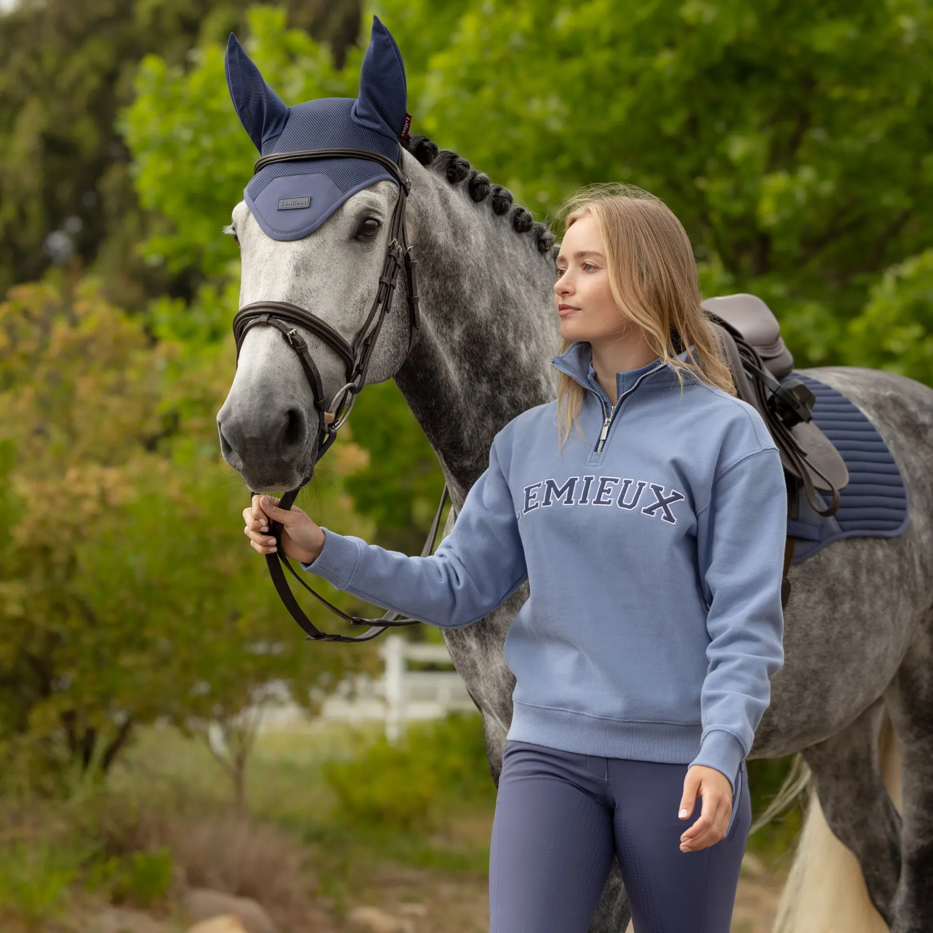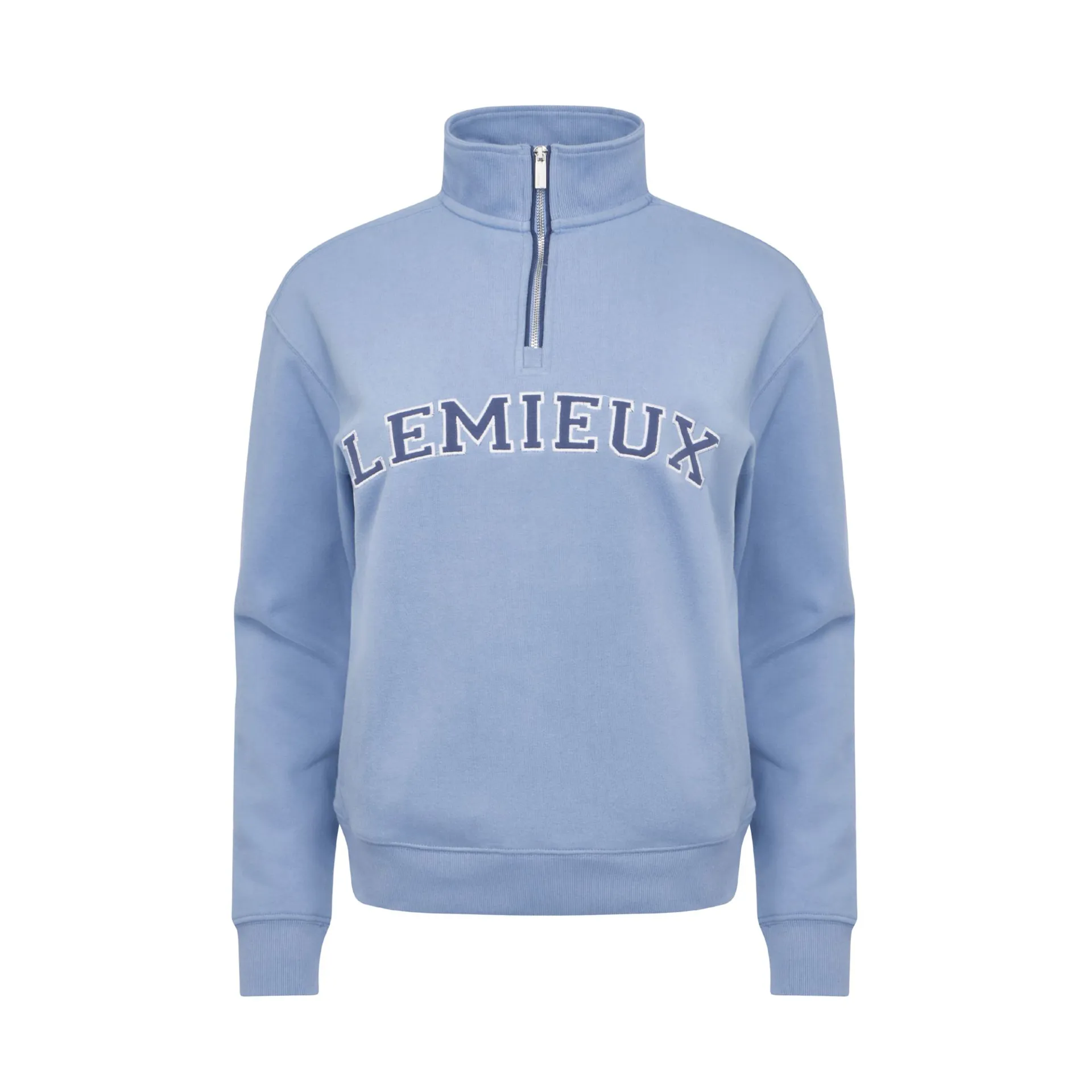 Designed to nail the varsity trend, The LeMieux Kelsie Quarter Neck Sweat in Powder Blue features retro embroidered LeMieux Kelsie Quarter Neck Sweat in Powder Blue features retro embroidered LeMieux branding for an authentic, heritage-inspired look. Crafted from soft brushed back jersey, this premium women’s sweatshirt delivers warmth and a luxuriously cosy feel, making it ideal for layering at the yard or styling casually away from the stables.