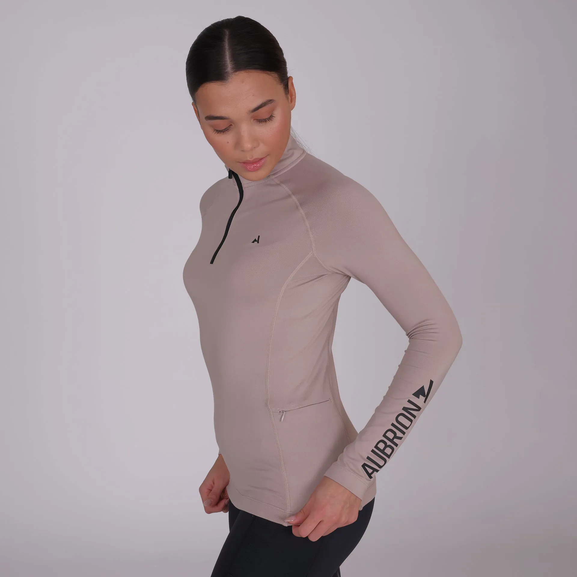 The stretch fabric and slim fit is figure hugging and flattering, whilst the 1/4 zip neck offers ventilation, perfect for riding or working out. A concealed zip pocket has been added for convenience to keep your valuables safe.