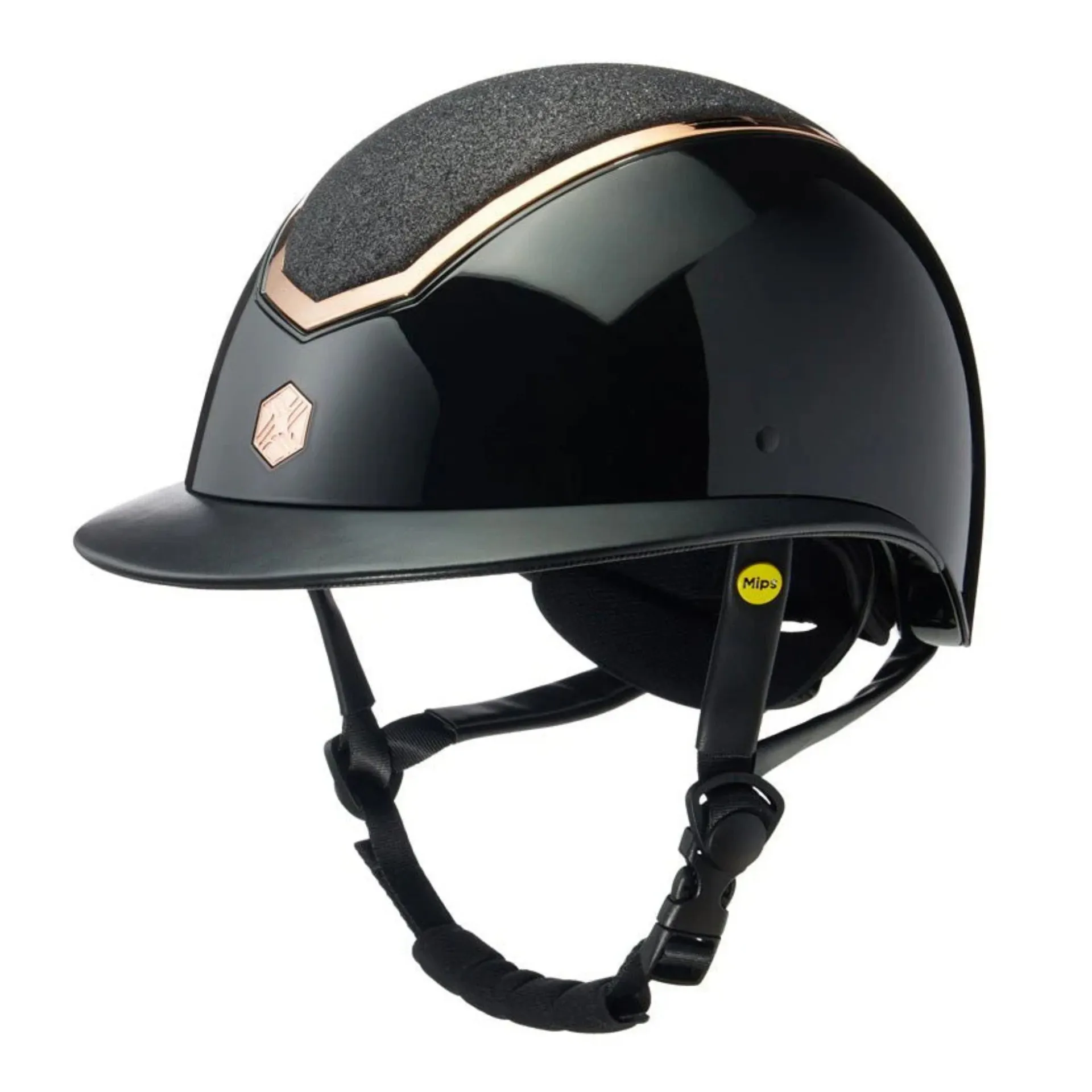 Question(s) asked regarding Charles Owen Kylo Riding Hat Black Gloss/Rose Gold Sparkly Wide Peak with Mips