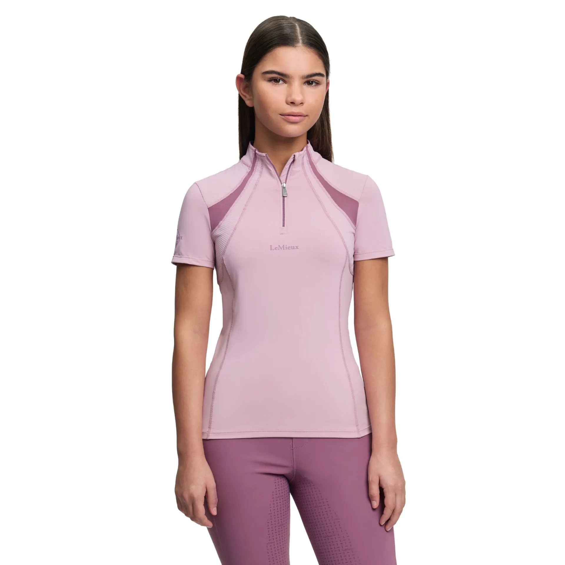 The LeMieux Young Rider Mia Mesh Baselayer in Fondant is a stylish and technical riding essential designed for active young equestrians.