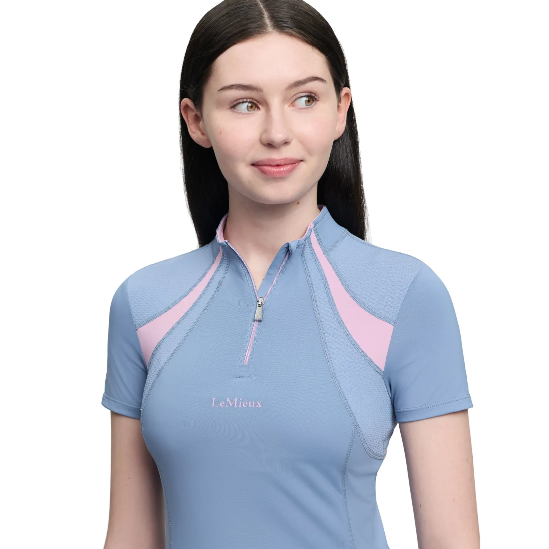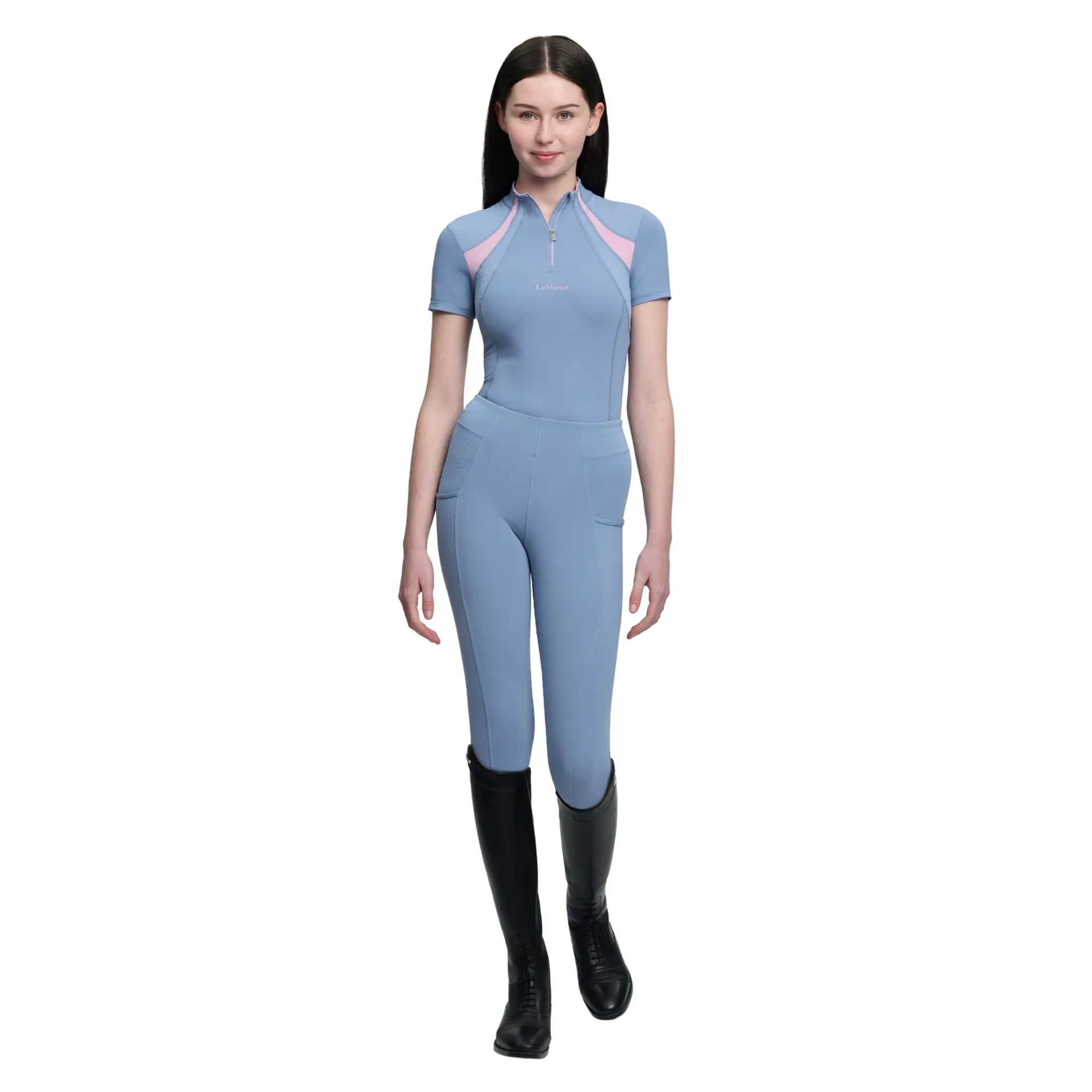 Featuring UPF50+ protection and lightweight performance fabric, The LeMieux Young Rider Mia Mesh Baselayer in Powder Blue helps regulate body temperature while keeping riders cool and comfortable in and out of the saddle. Ventilating mesh panels promote airflow, while the silky-smooth stretch fabric provides a flattering tailored fit and full freedom of movement. Designed with ultra-soft seams and flat lock stitching to reduce pressure points and chafing, The LeMieux Young Rider Mia Mesh Baselayer in Powder Blue is perfect for everyday riding, training sessions, or warm-weather activities. Whether worn as a base layer or on its own, The LeMieux Young Rider Mia Mesh Baselayer in Powder Blue combines performance, comfort, and modern equestrian style.