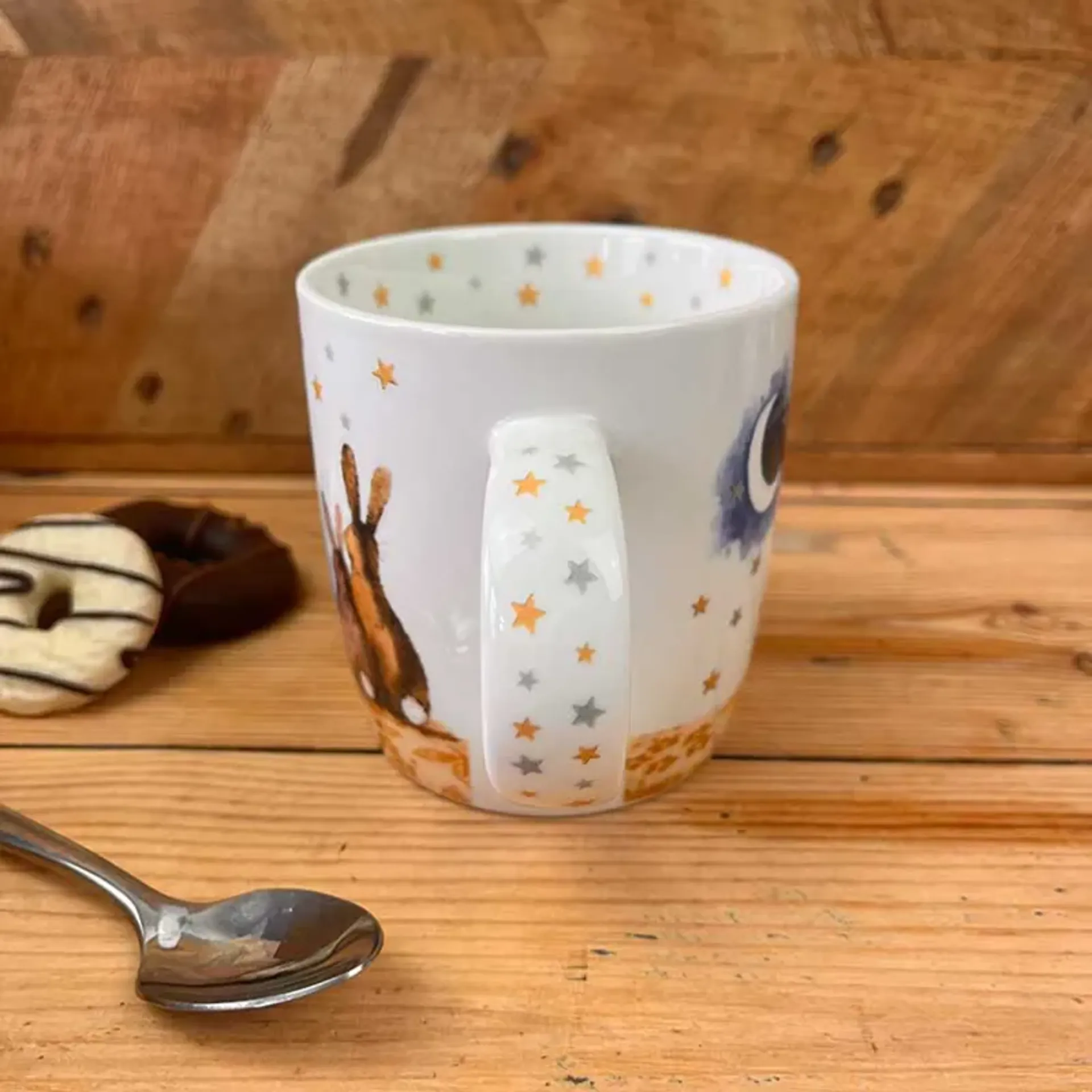 Perfect for coffee, tea, and other hot drinks. This mug features illustrations around the inside rim and down the handle. The design is taken from an original watercolour and repeated on the back.
