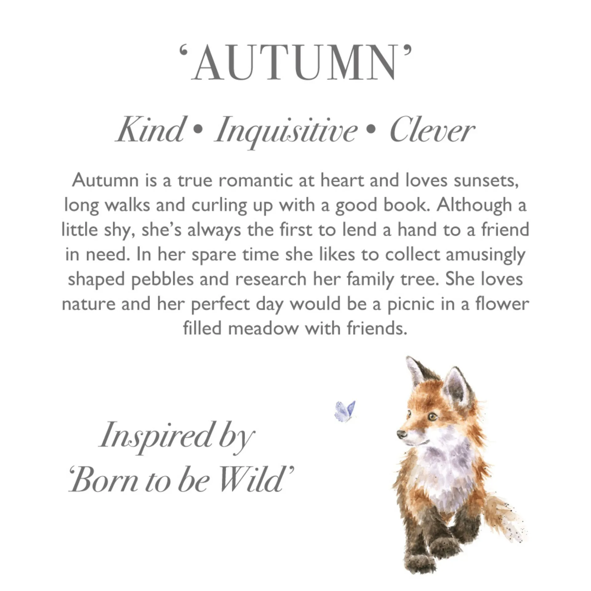 With careful sourcing of fabrics, each of the plush characters in our collection are completely unique and combine high quality soft and tactile materials reminiscent of the animal and Hannah’s original artwork that we know and love. A great gift for any collector of the Wrendale range.