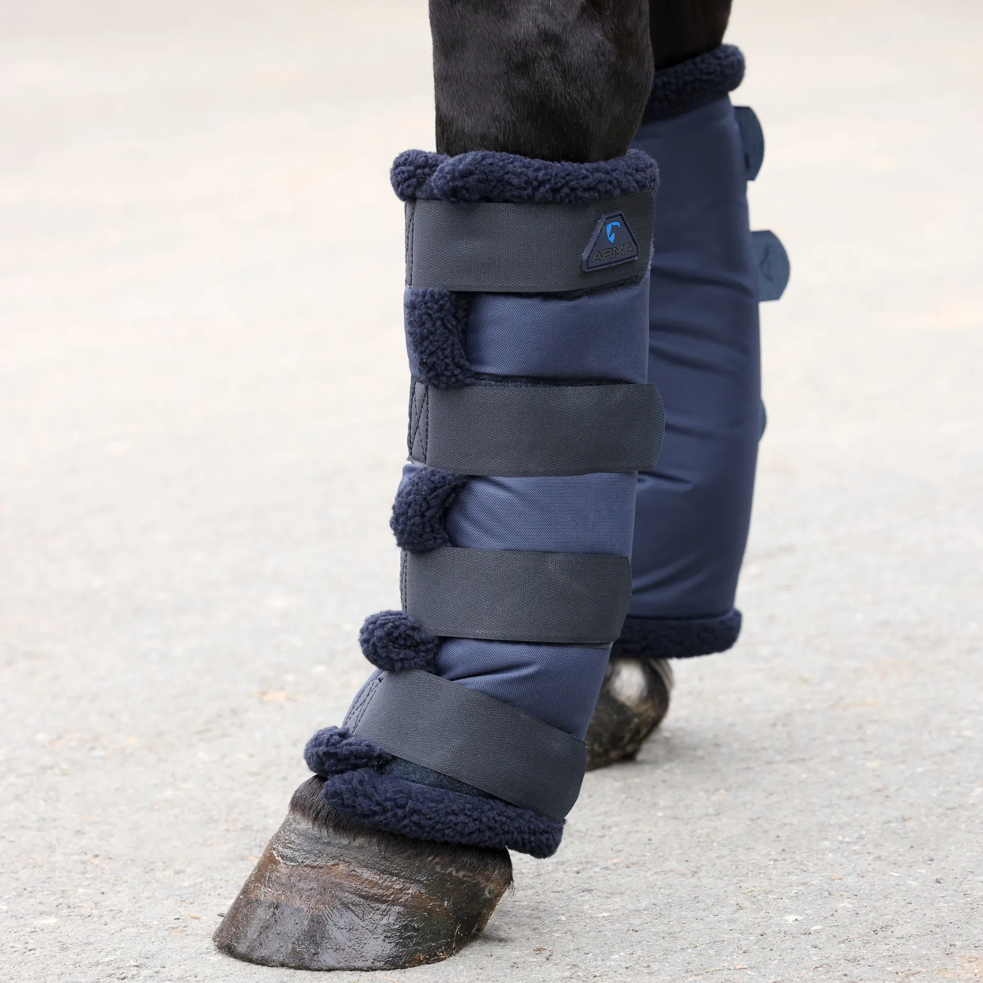 These travel boots feature tough nylon outers and thick synthetic sheepskin lining to protect your horse's legs whilst travelling. The shorter height is more readily accepted by horses that are not used to travelling or smaller ponies. They have strong adjustable touch close straps.