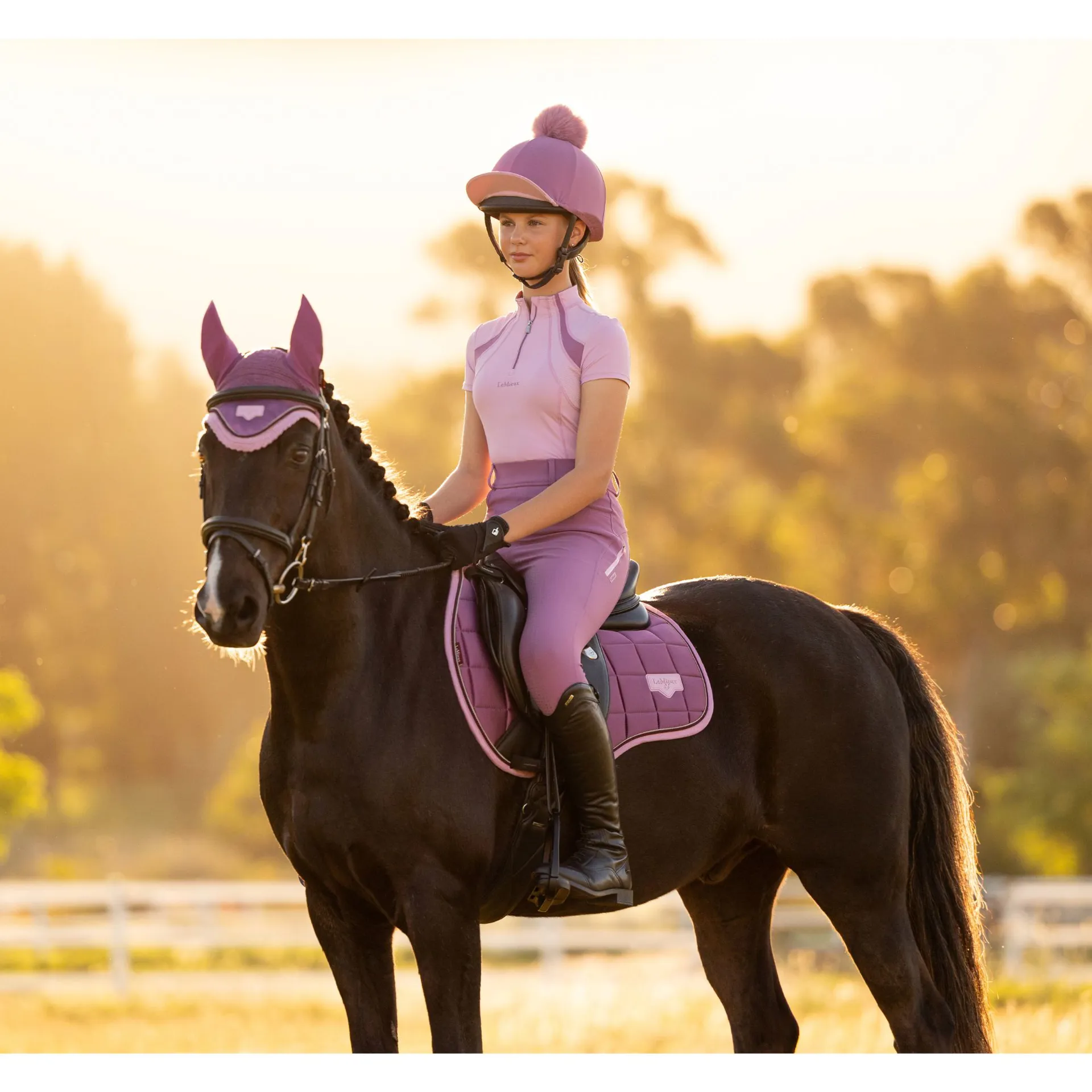 Featuring a beautifully woven Loire satin upper, The LeMieux Loire Classic GP Square in Mallow delivers a sophisticated finish while maintaining durability for everyday use. Beneath the surface, the breathable natural bamboo blend lining helps regulate temperature and wick moisture away from your horse’s skin, ensuring lasting comfort during schooling or hacking. Designed with a high wither shape, The LeMieux Loire Classic GP Square in Mallow reduces pressure across sensitive areas and enhances saddle fit for improved stability. The friction-free binding has been carefully engineered to contour the edges smoothly while helping the pad retain its shape over time. Elasticated saddle straps are slimmer at the D-ring connection point, allowing additional accessories to be used without restriction. Finished with a textured faux leather girth protection panel, signature LeMieux girth loops and a metal logo badge, the LeMieux Loire Classic GP Square in Mallow offers a premium, polished look for every ride.