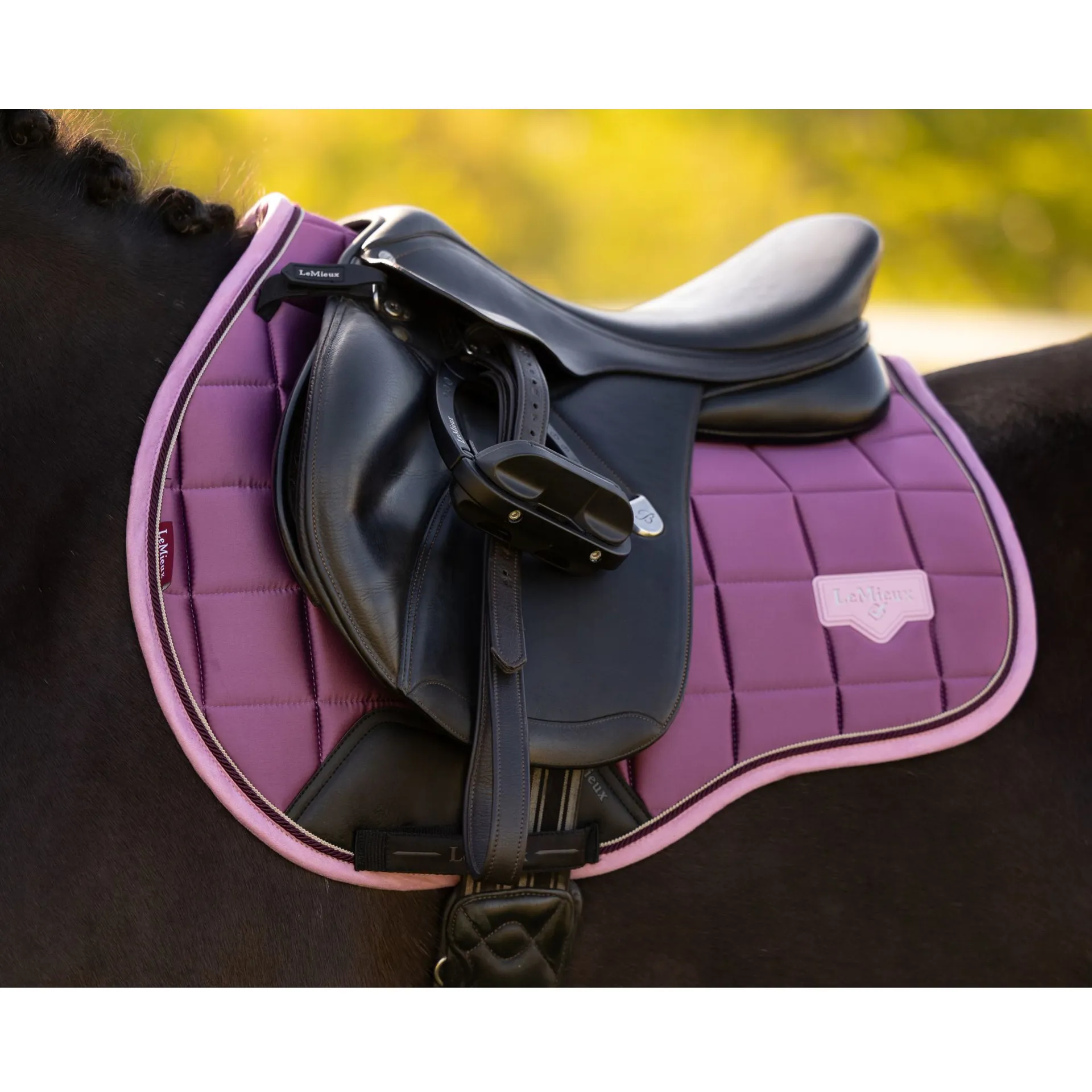 The LeMieux Loire Classic GP Square in Mallow is a luxurious and technically advanced all-purpose saddle pad designed for riders who want both performance and style.