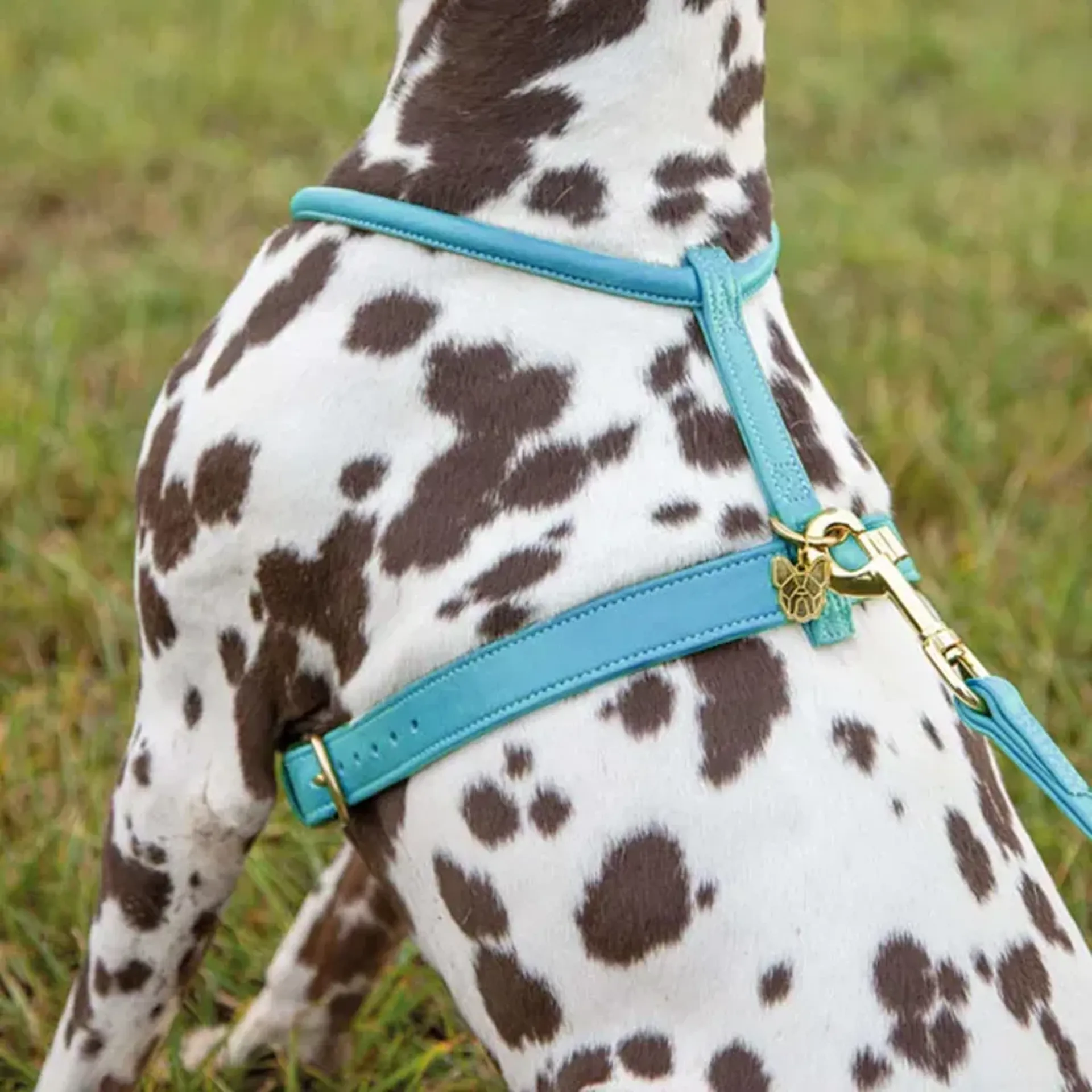 Add colour and comfort to your adventures with this super soft rolled leather dog harness.