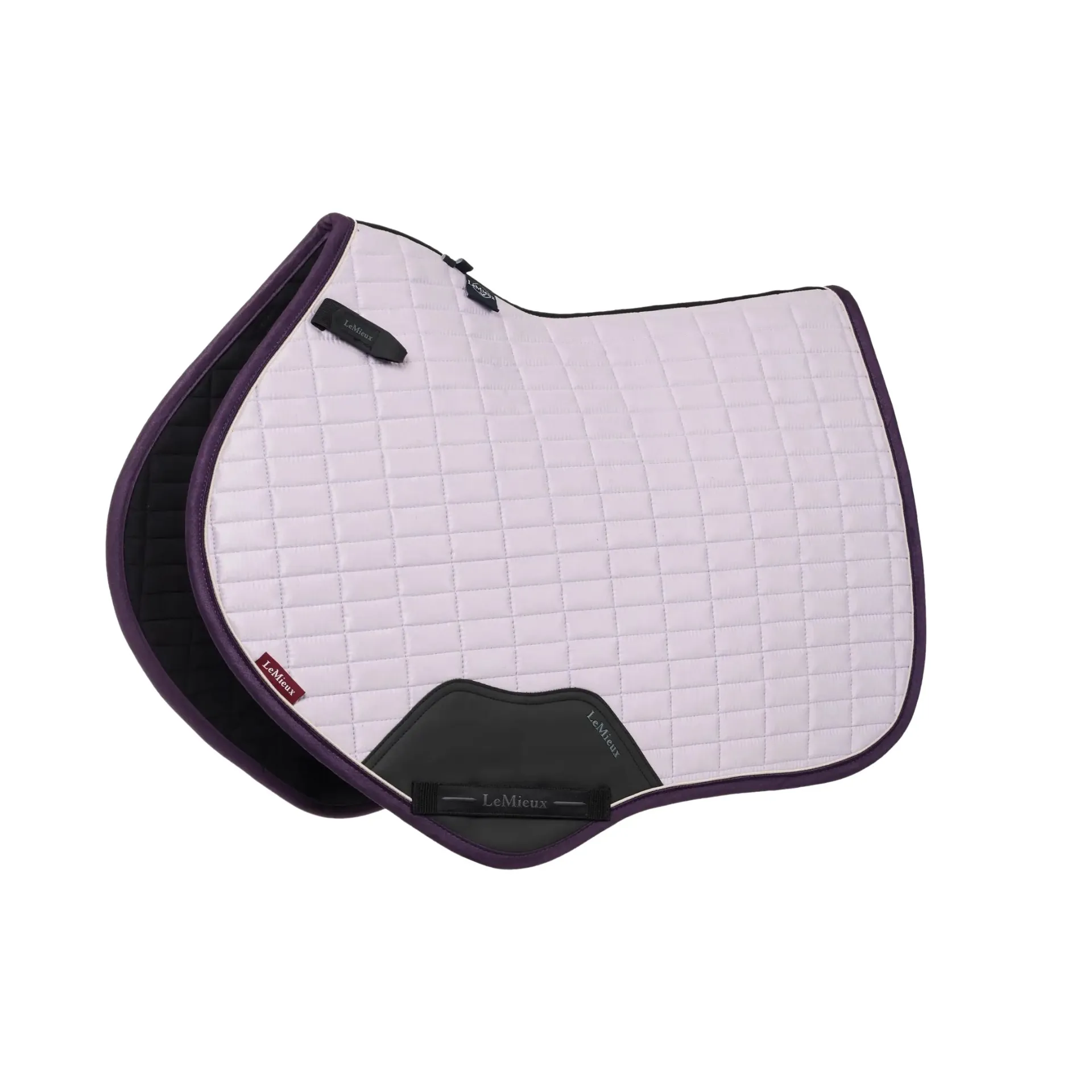 An iconic jumping pad with its high wither cut, elasticated D-ring tabs and swept back profile, our suede saddle pads offer practicality and comfort under the saddle.